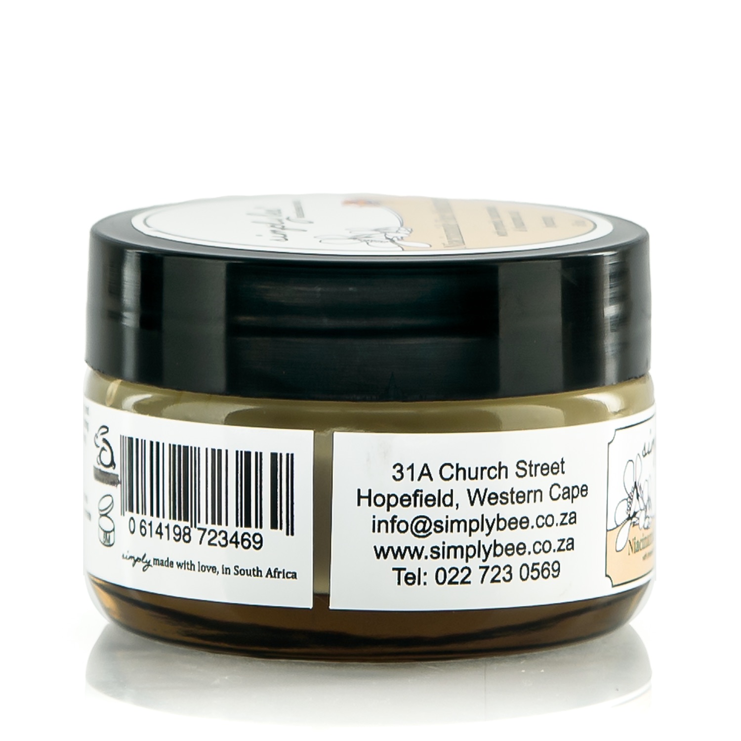 | Ingrediënten | Butyrospermum parkii (Shea) fruit butter, Cera alba (Bijenwas), Cetearyl olivate & Sorbitan olivate (Emulsifier O), Propolis, Prunus amygdalus dulcis (Sweet Almond) oil, Sclerocaryabirrea (Marula) seed oil, Aqua (Water), Benzyl Alcohol, Dehydroacetic Acid, Eriocephalus Punctulatus (Cape Chamomile), Nicotinamide (Vitamin B3), Sodium Hyalurona (Hyaluronic Acid) |